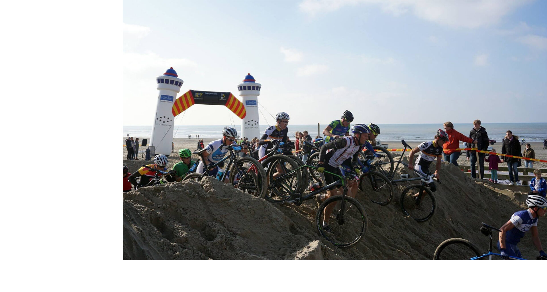 La carrera final ha comenzado, un grupo de ciclistas se lanza hacia la línea de meta... ¿Está allí tu arco de meta inflable, u otra promoción personalizada? Revisa rápidamente nuestras opciones de promoción en la categoría 'ciclismo'.
