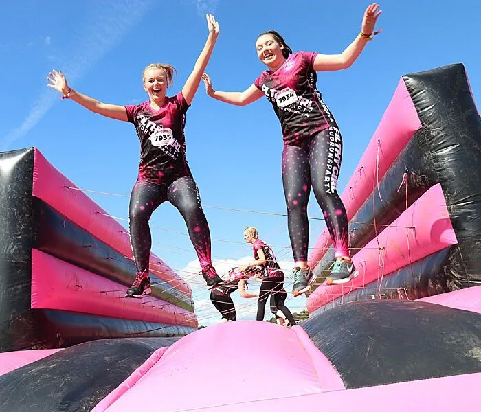 Arrastrarse por el barro, deslizarse hacia la meta: un mudrun es divertido para jóvenes y adultos. Haz tu carrera más emocionante con una pista de obstáculos inflable o elige otro atractivo personalizado.