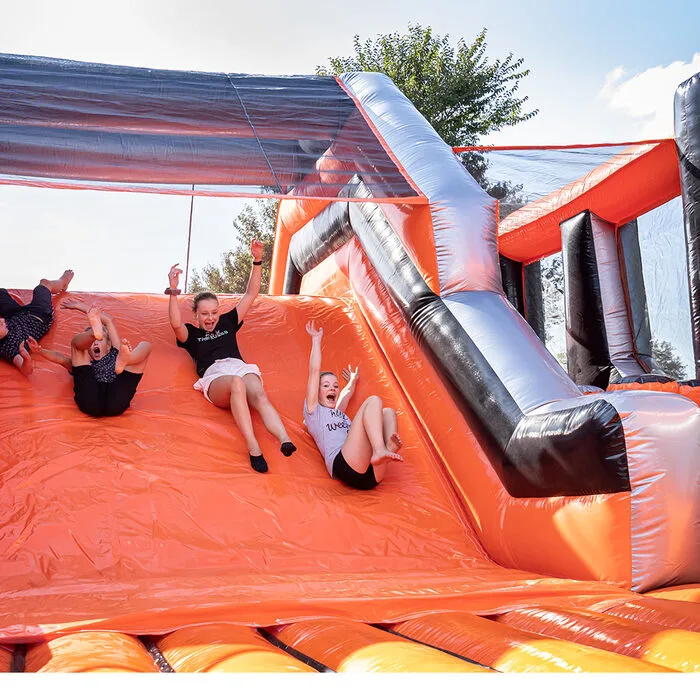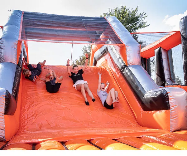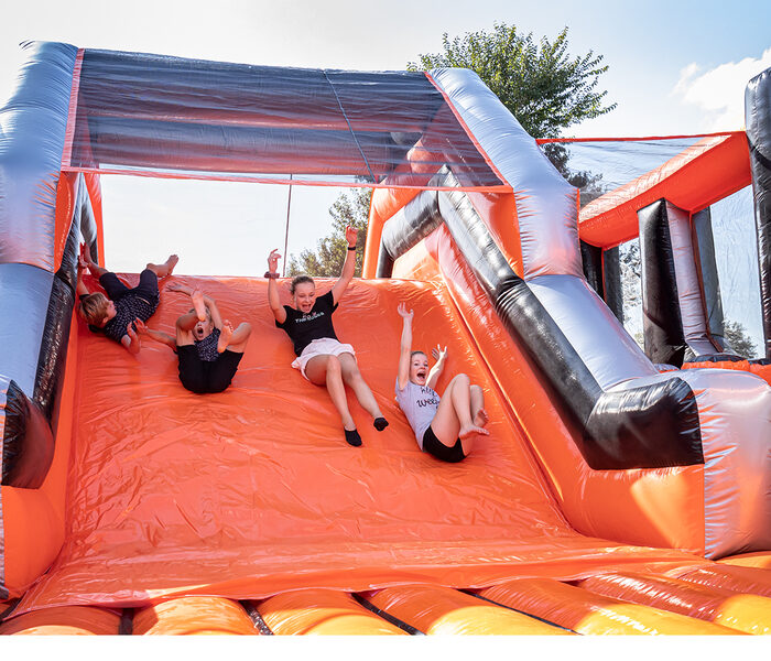 Chicos contra chicas, padres contra hijos o colegas entre sí: una pista de obstáculos hinchable es garantía de competición deportiva. Las fabricamos modulares y personalizadas. ¡VAMOS, VAMOS, VAMOS!
